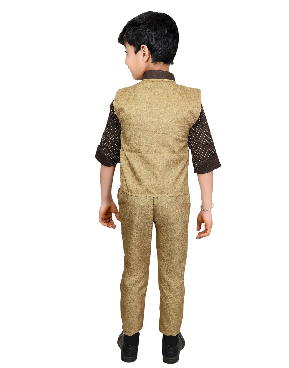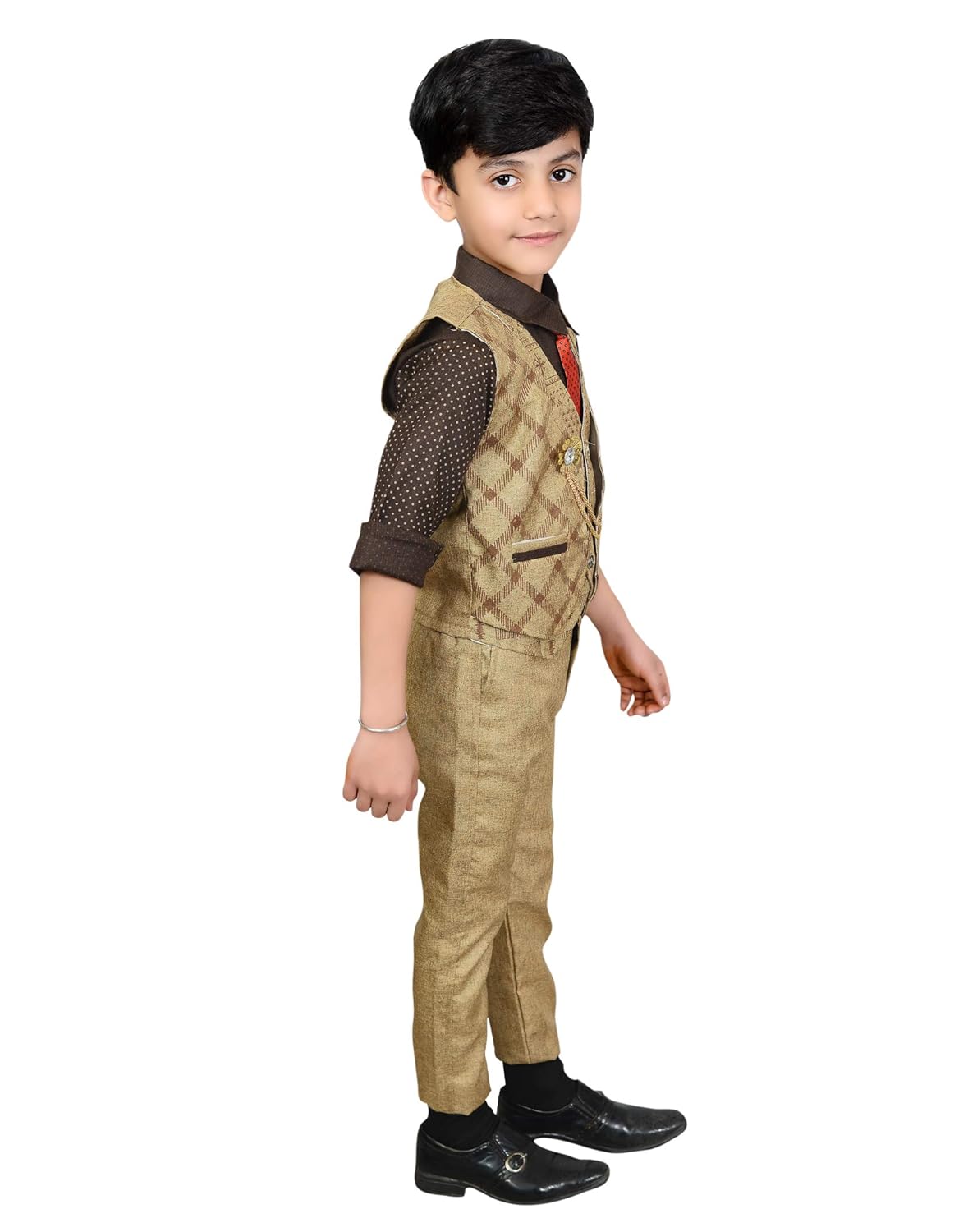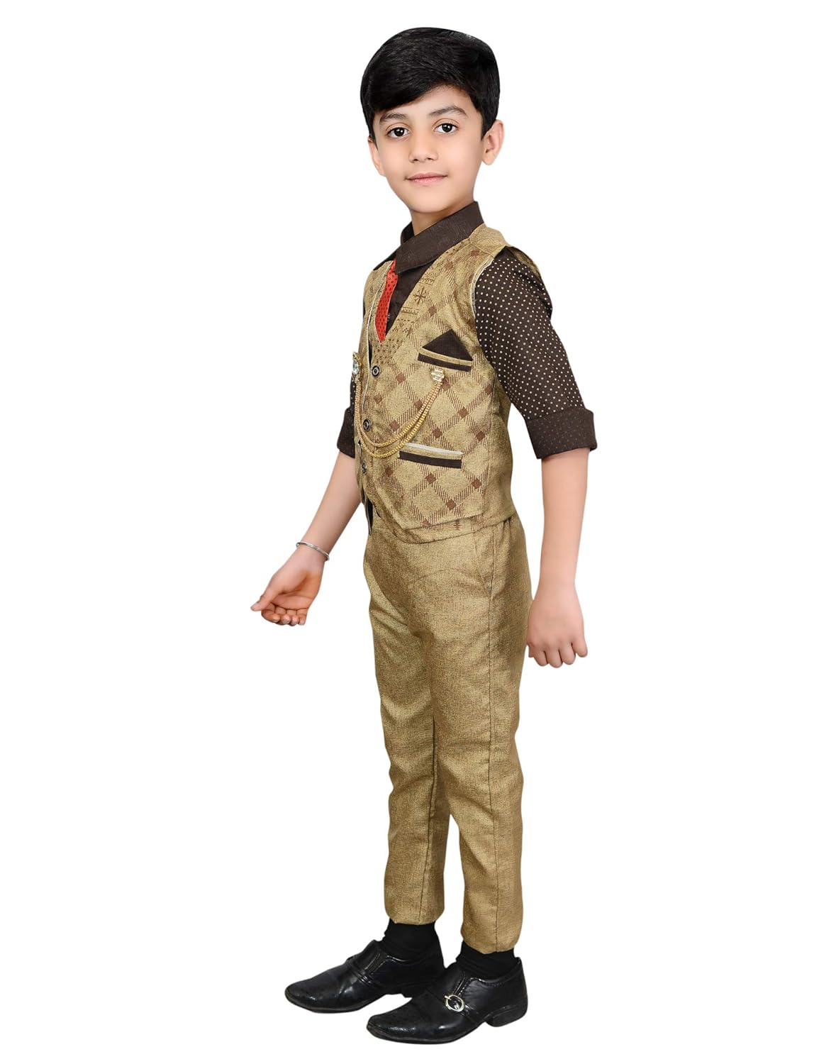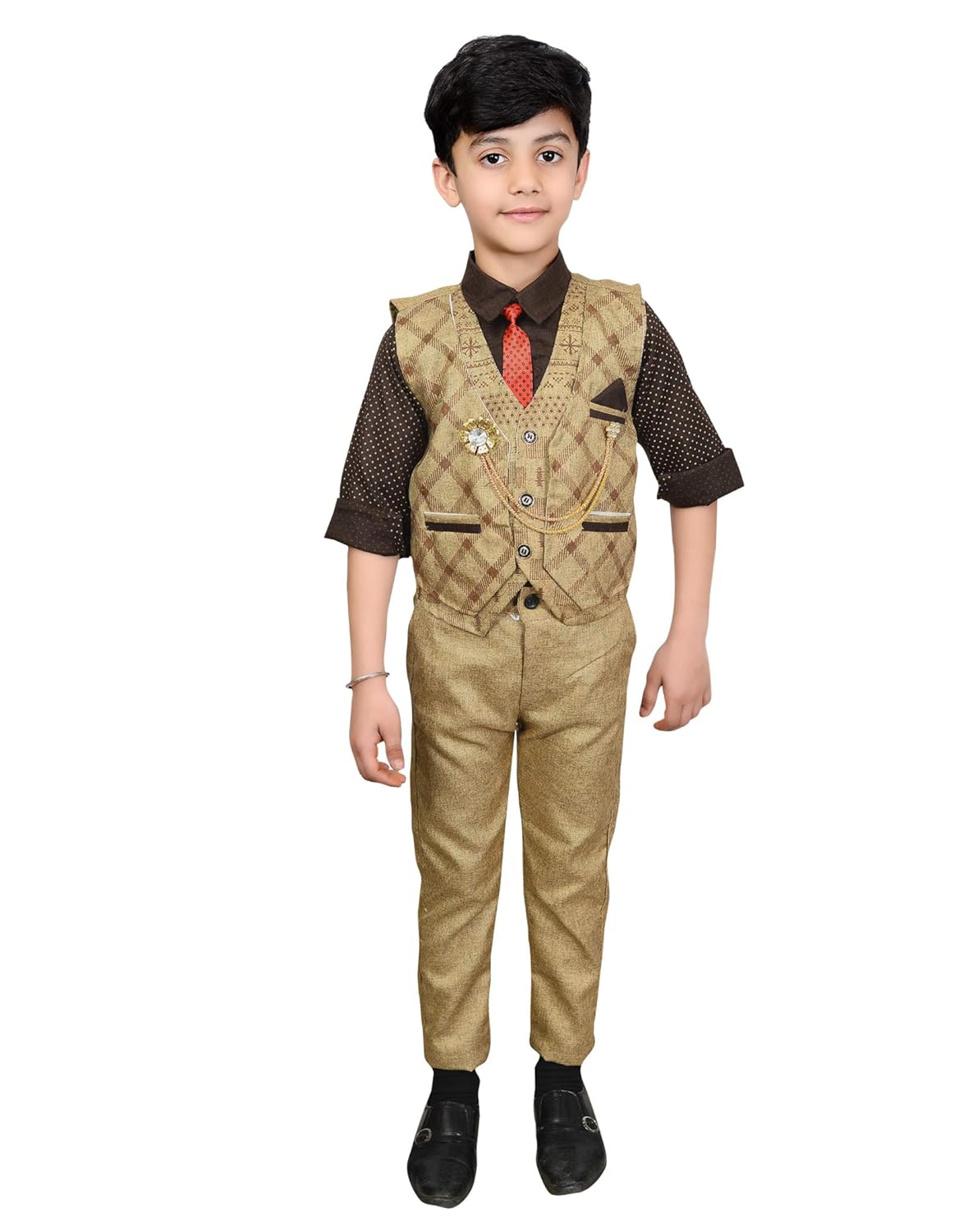 From the house of Arrangers, this exclusive premium waist coat shirt tie & pant set are very comfortable, stylish, elegant & you can purchase for your little ones in following occasions