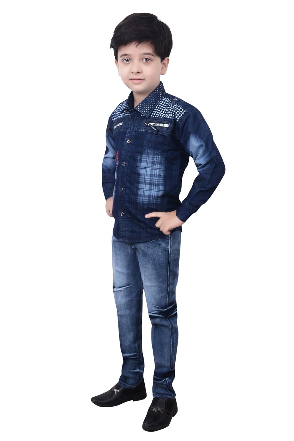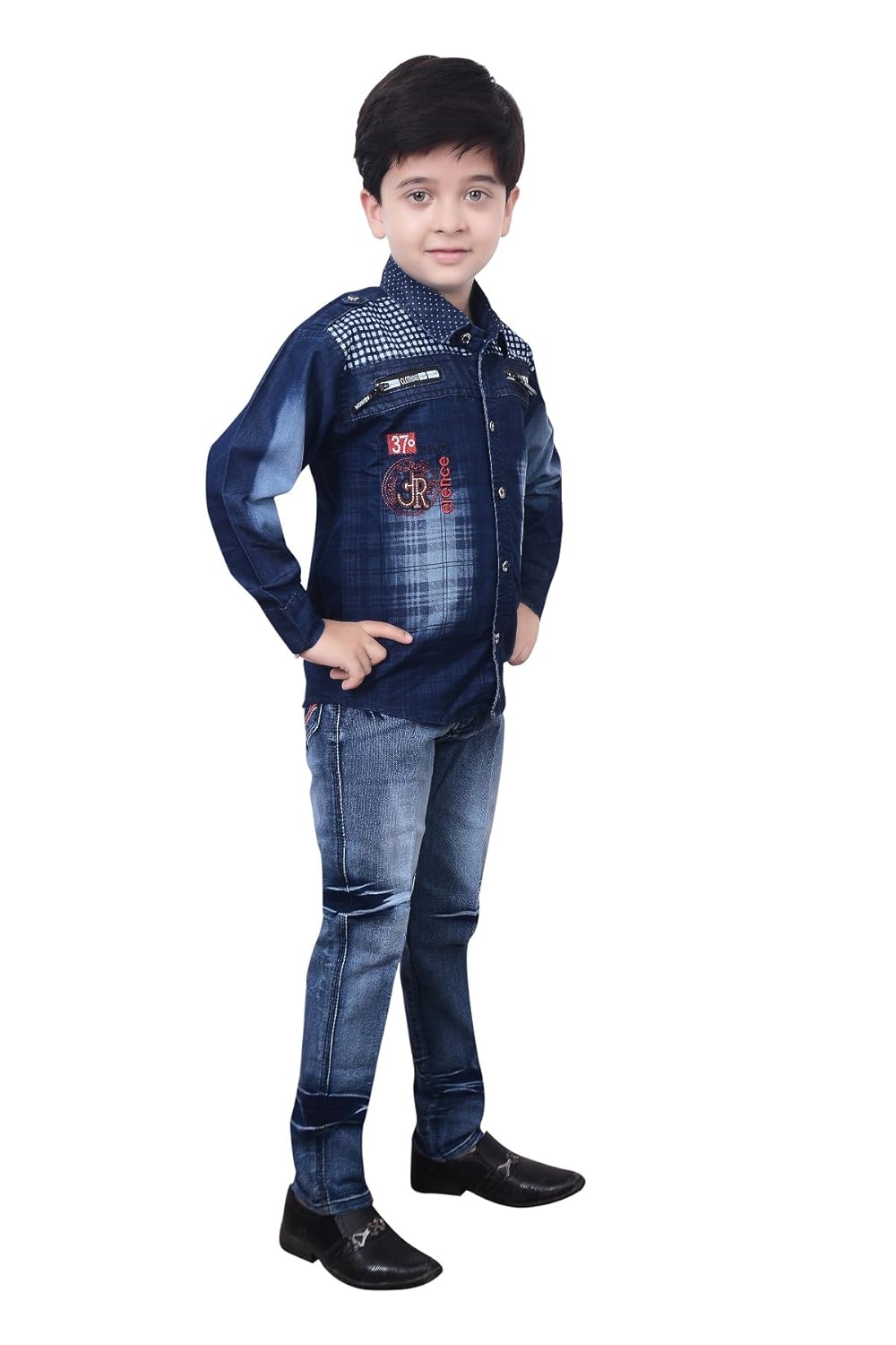 Our little champ will look his best when wearing this handsome Shirt and Jeans set . This regular-fit set is comfortable to wear and exhibits a fine finish. This set features attractive design and looks just irresistible. Arshia Fashions a noteworthy manufacturer, exporter and supplier of a wide collection of Kids wear. Here you can find a wide range kids ethnic wear and western wear which includes kurta pyjamas, indo western, sherwani, pathani suit set and t-shirt, Jeans, trouser, shorts etc |