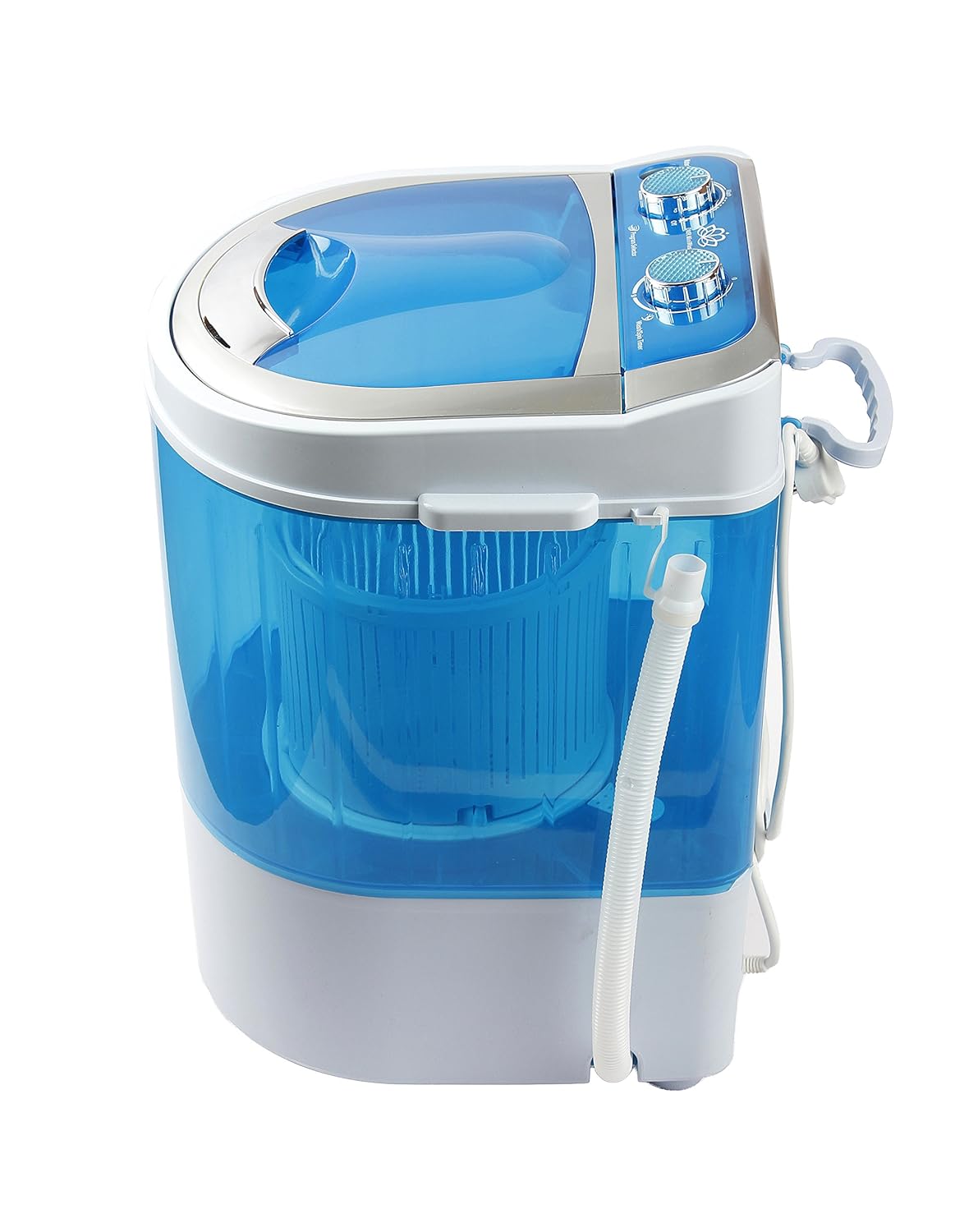 DMR 30-1208 miniwash portable 3 kg single tub semi automatic washing machine with dryer basket following are the features of this machine: Portable- light weight, small size - single tub washing machine with 3 kg capacity having dryer basket. low cost, low electricity consumption and low water requirements. Wash capacity: 3kg spin basket 1.5 kg can wash 6-7 cloths at a time. 1 year warranty (free spare support), available in , LxWxH - 40x40x55 cms gross, net weight - 6 kgs/5kgs, colour available- Blue. Accessories: Inlet pipe, spin basket, cover for spin basket, product manual. Technical Specifications: Wash capacity - 3 kgs, spin capacity - 1.5 kg, wash time - 15 minutes, spin time - 6 minutes, ac input - 220v/50hz wash and spin power - 240 w. Motor type- copper motor knobs - 2 knobs. 1 for wash and spin selector and other for wash and spin timer washing cycles clock wise and anti clockwise type semi automatic washing machine. Body material- plastic. Loading type- top auto power off - yes preference will be given to selected colour option. However choice of colour depends on availability of stock.