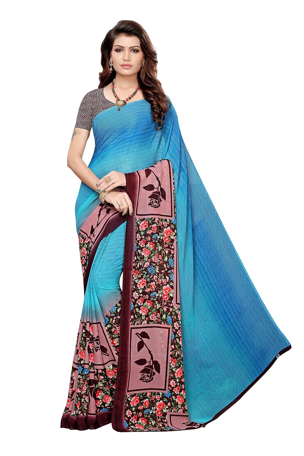 Anni Designer GeorgetteWhite & Pink Sarees For Women With Blouse (2 Colors Available)