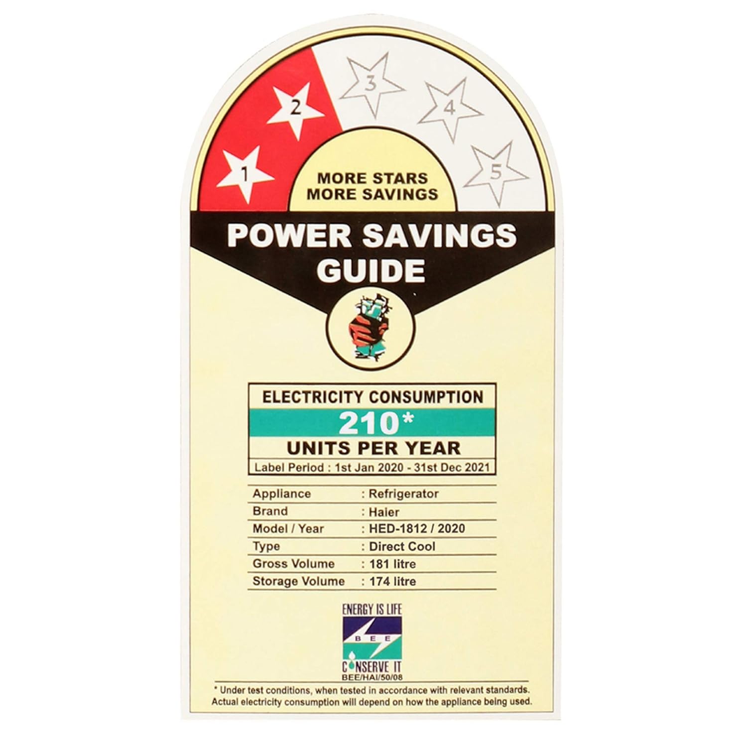 Energy rating: 2 star, Annual energy consumption: 210 per year