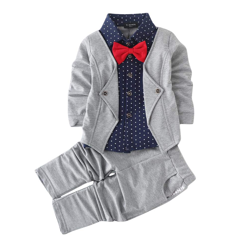 Package Includes: 1 Grey Blazer, Navy Inner T-Shirt and Red Bow Attached together as a single piece and 1 Grey Pant