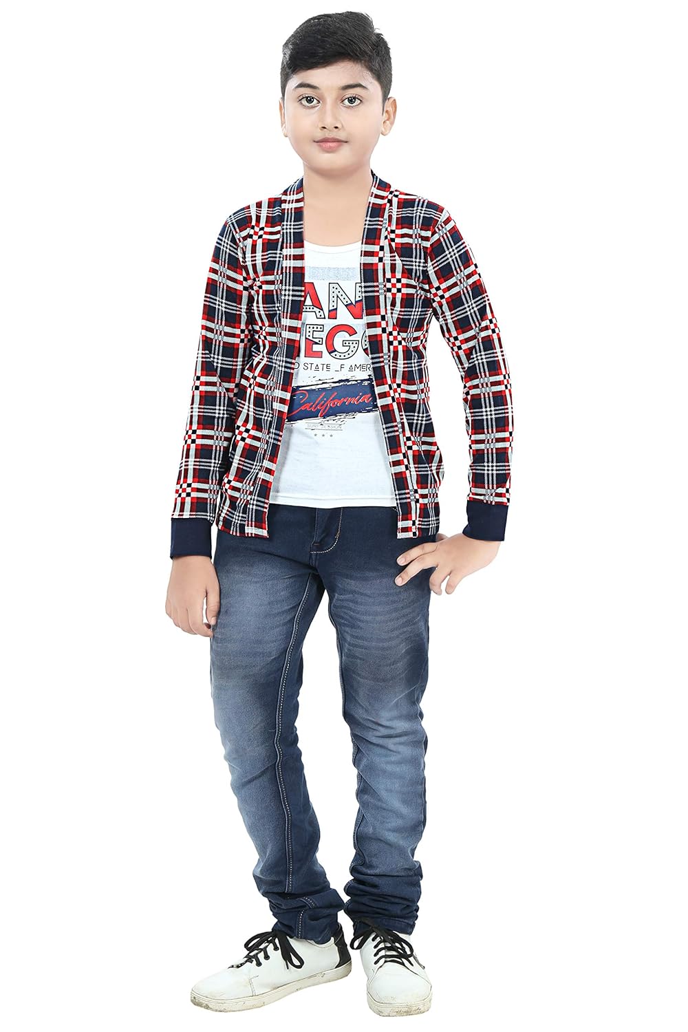 SDS Fashion Boys Full Sleeve cotton white printed t-shirt with attached Checked jacket shrug. You can wear this t-shirt for any casual and festive purpose. Light weight fabric sweeps sweat away from your skin. This T-Shirt will be comfortable all day long. Look smart and comfortable by wearing this t-shirt. Easy to clean and maintain.