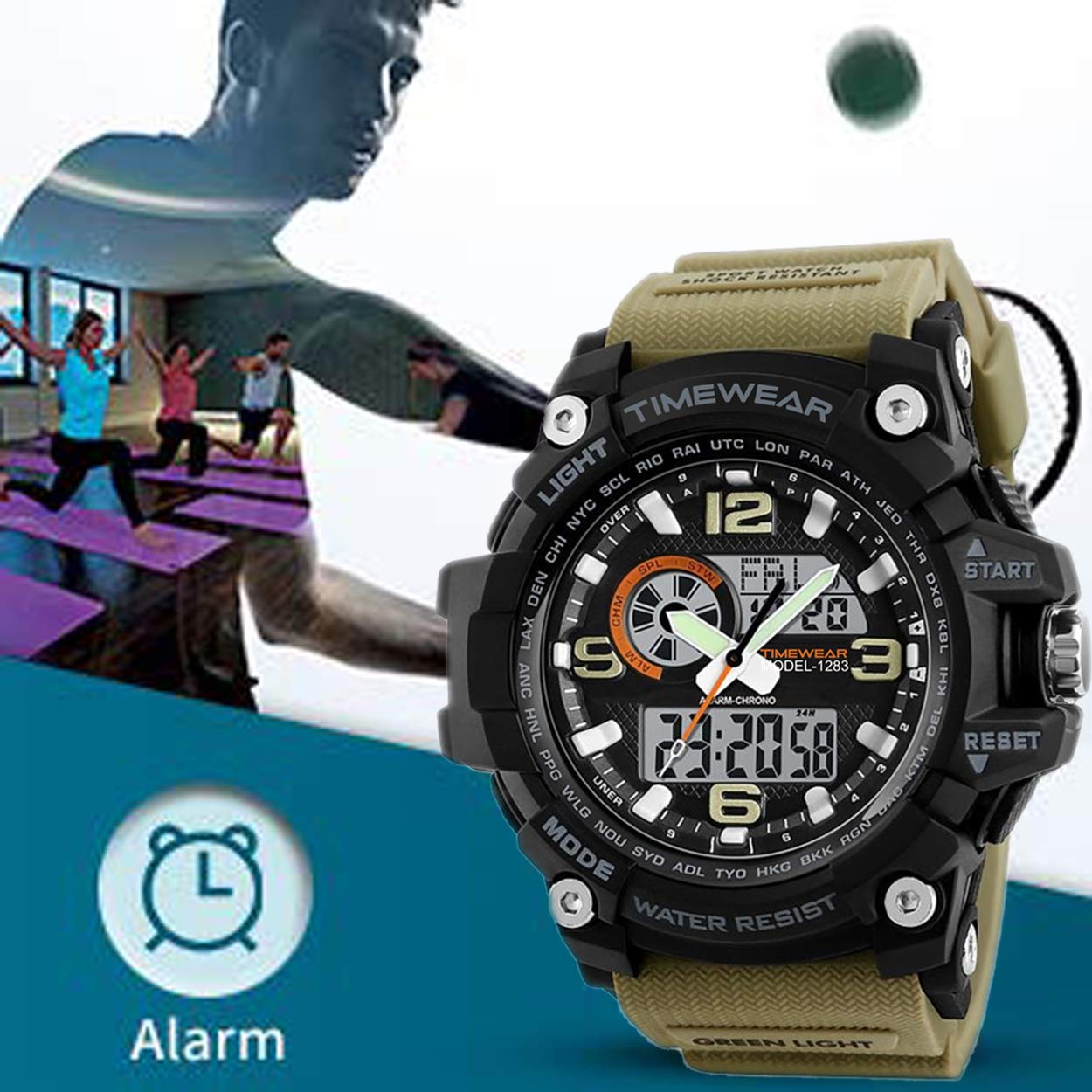 This watch from the Military series by Timewear features a multifunctional dial that is enclosed in a sporty body. The dial features a date and display window along with a host of other functional features. The water-proof watch for men has a stop-watch that can be used to calculate time. Flaunting a sporty bezel and a silicone strap, it is really stylish and comfortable at the same time. This watch can be paired with cargos and T-shirts for a fashionable look. |
