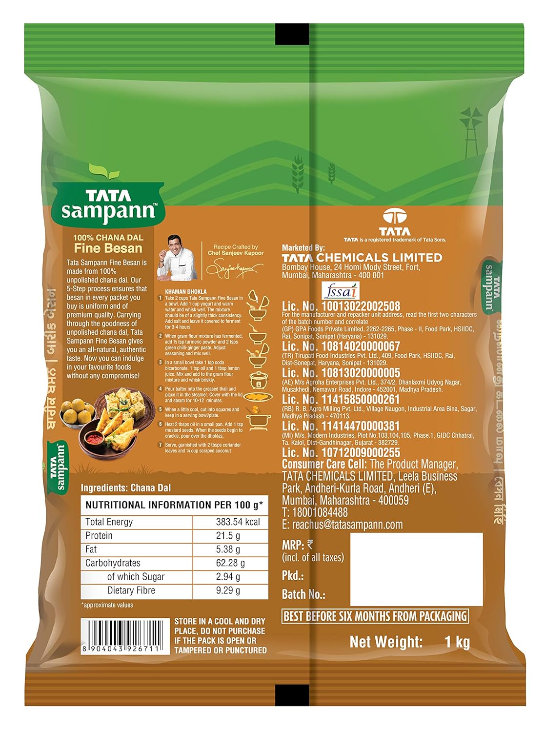Tata Sampann Low-oil Absorb Fine Besan is made from 100% unpolished chana dal that is specially sourced under the “Grow More Pulses Program” an initiative of Tata Chemicals Ltd. and Rallis India Ltd.