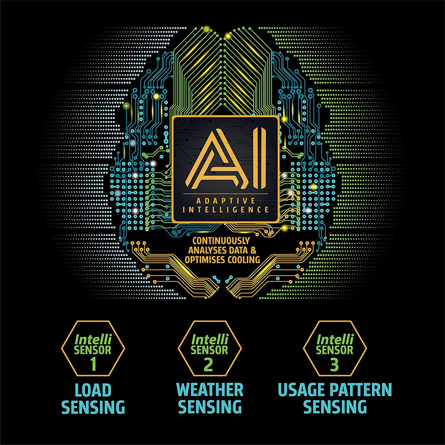 Adaptive intelligence technology:(AI) microprocessor and 3 intellisensors sense load, weather conditions and usage patterns ensuring optimum cooling for long-lasting freshness