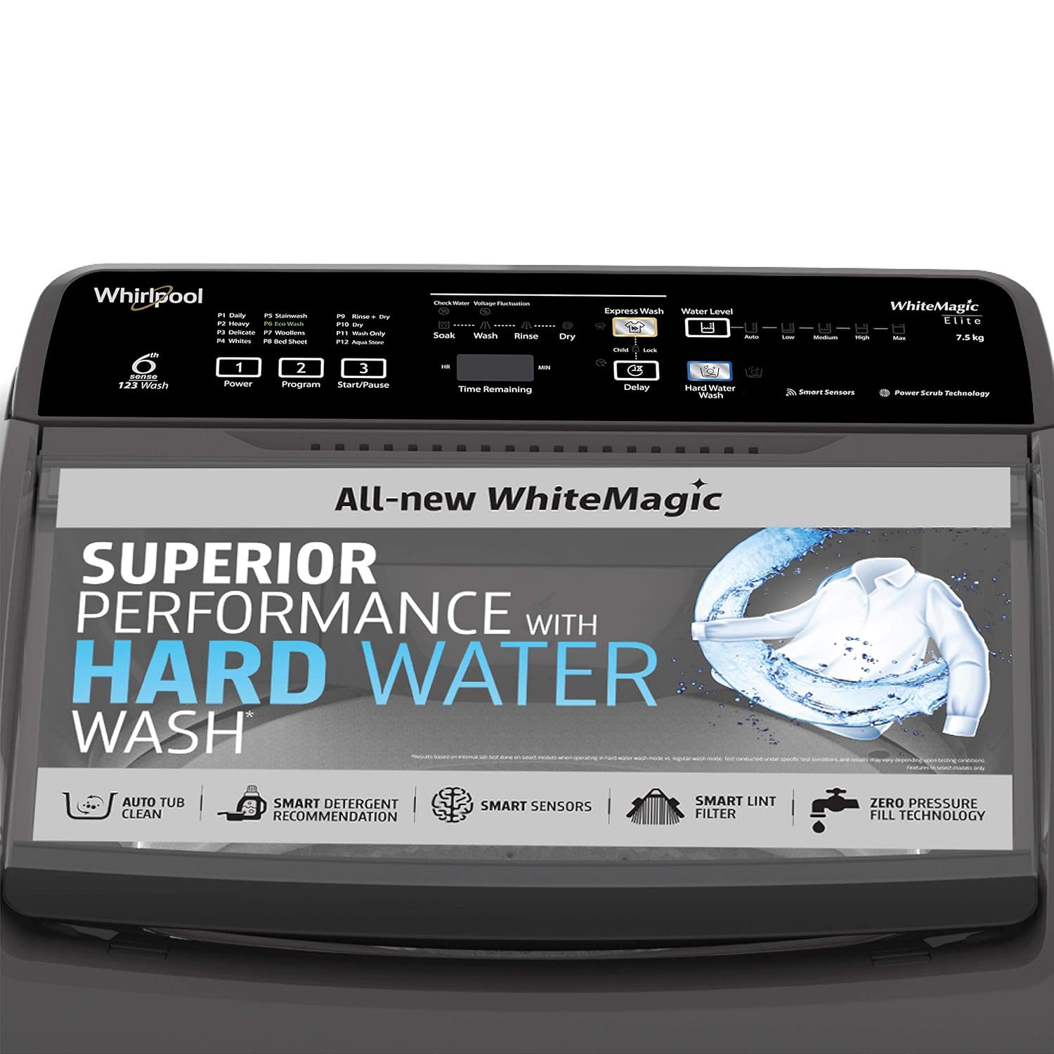 Powered by the power scrub technology, the whirlpool white magic elite gives a thorough wash, every time. Its intelligent sensors and smart lint filter gives the best wash, even in hard water and low water pressure conditions.No. of Wash Programs: Daily, Heavy, Delicates, Whites, Hard Water Wash, Woollens, Bedsheets, Sari, Rinse+Spin, Spin only, Wash only, Aqua Store
