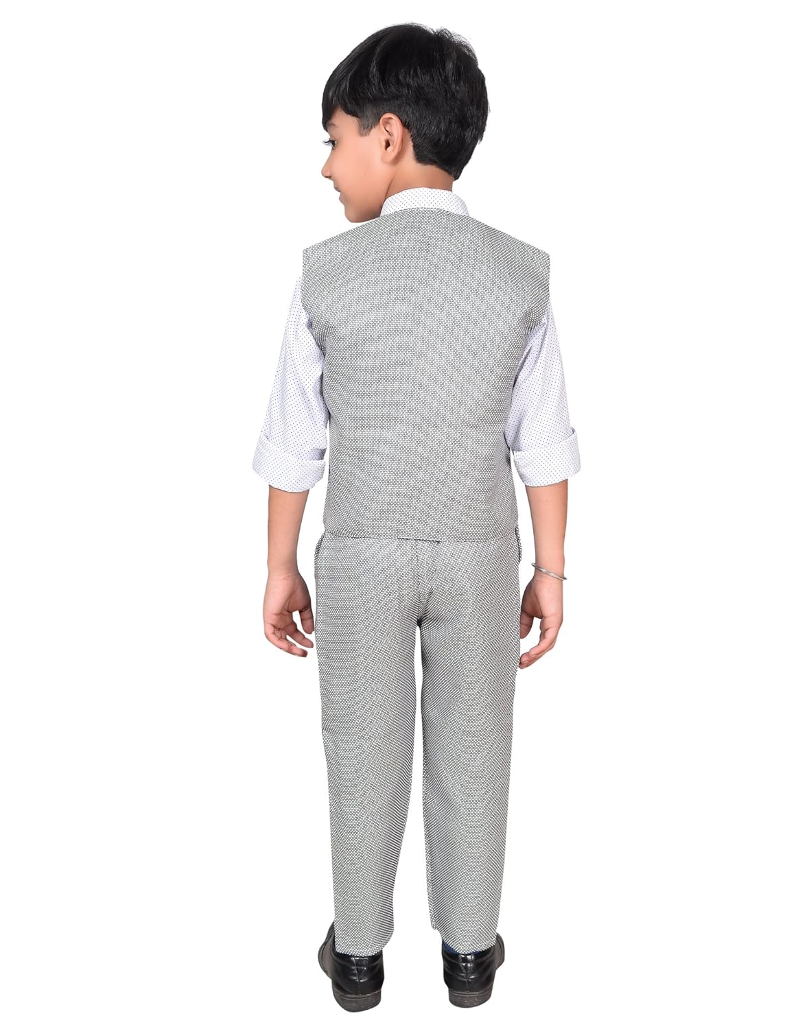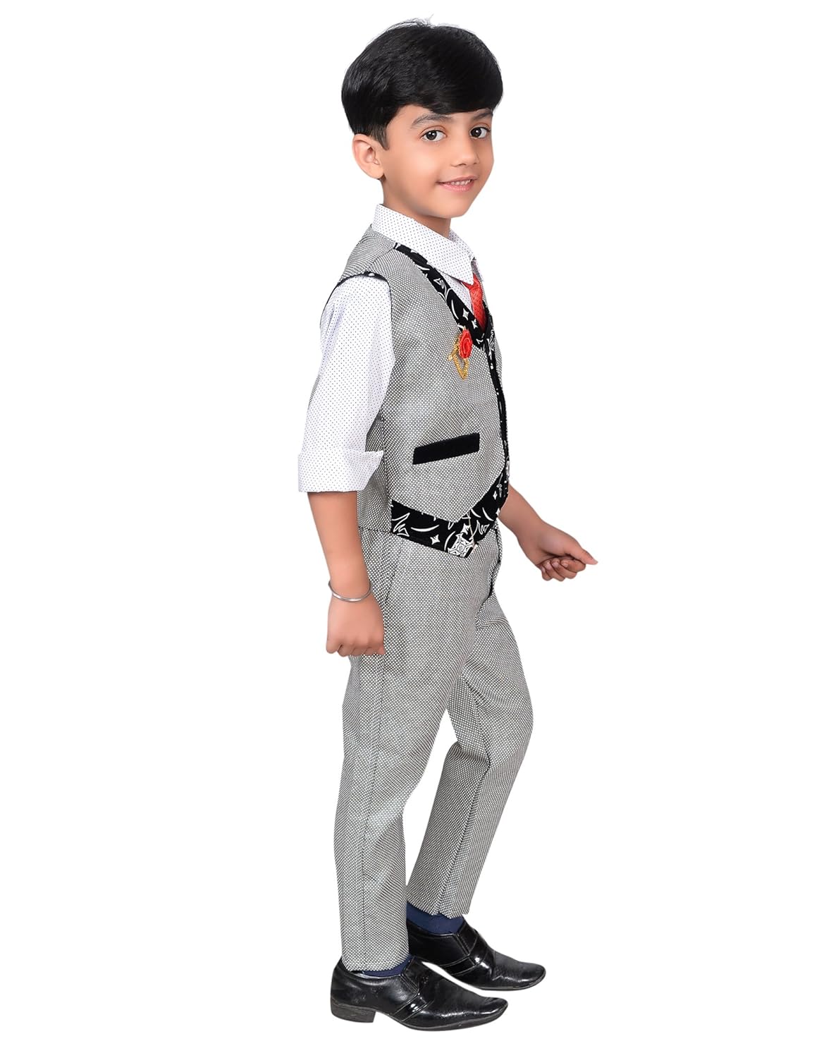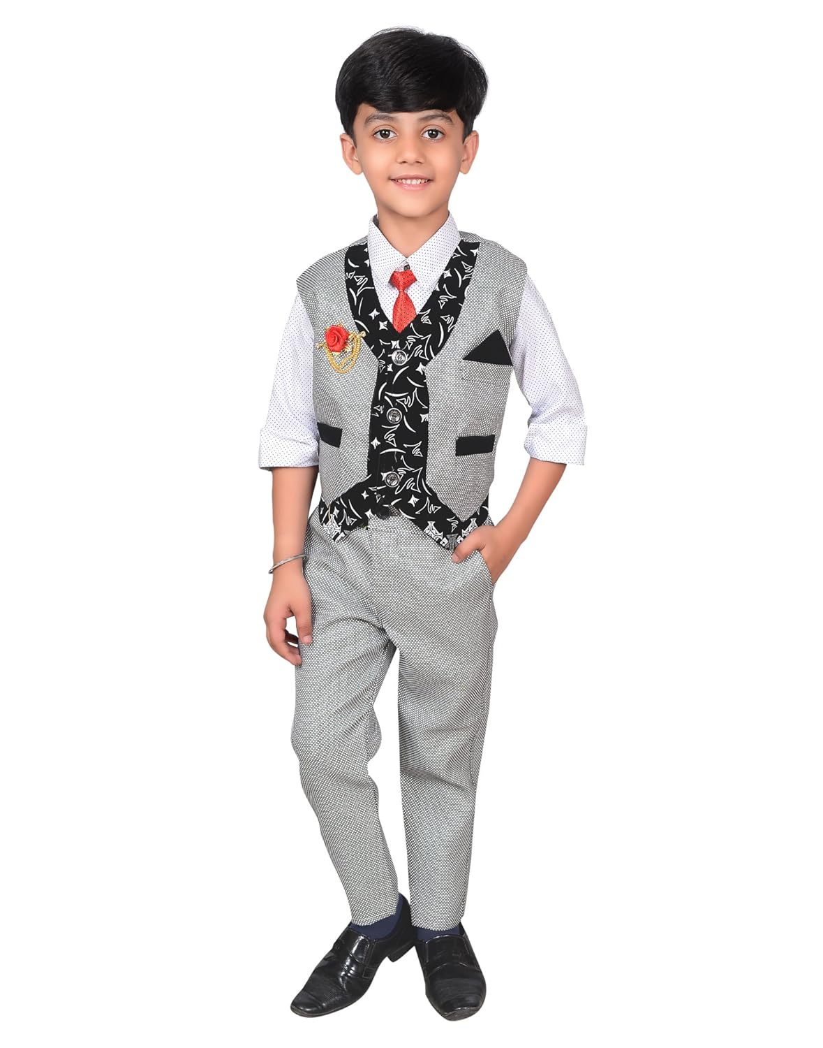 Sales Package Contents- 1 Waistcoat, 1 Pant and 1 Shirt 1 Tie and 1 Brooch