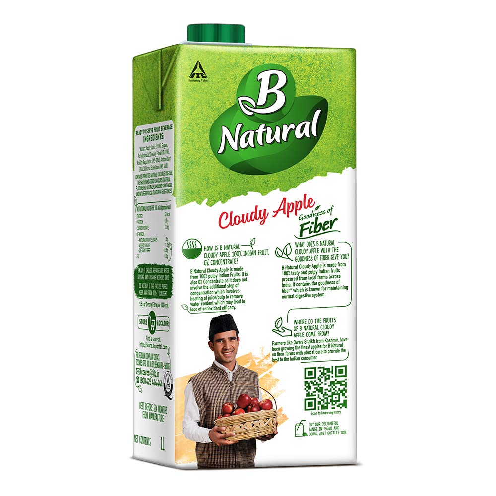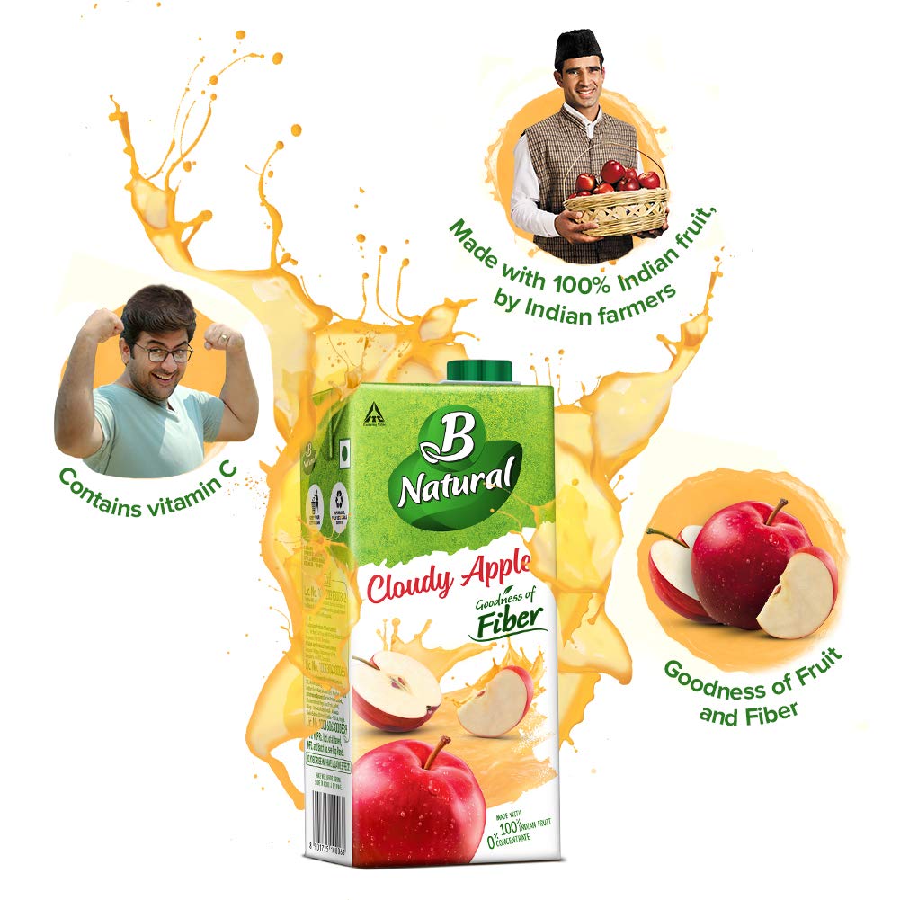 B Natural Apple Juice, 1L (Pack of 2)