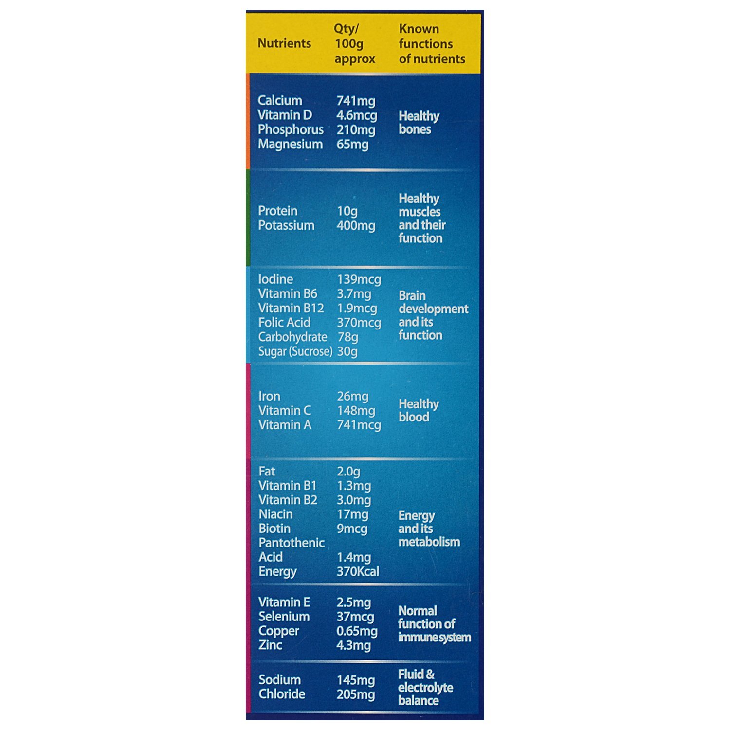 Horlicks is a Health Drink that has nutrients to support immunity. Horlicks is clinically proven to improve 5 signs of growth and is clinically proven to make kids taller, stronger and sharper. Horlicks is scientifically proven to improve power of milk. Horlicks is now available in 4 exciting and yummy flavors - Classic malt, Chocolate, Elaichi, Kesar Badam. Enjoy with a cup of hot milk or a glass of cold milk. |